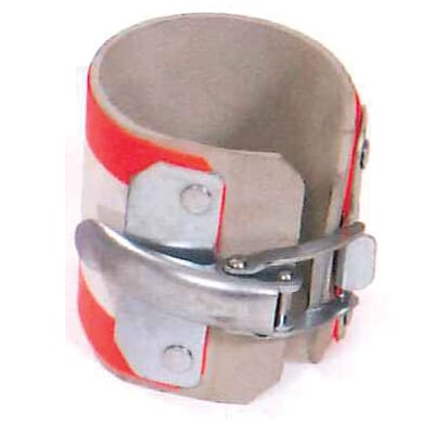 For tetting av slanger med hull. Kraftig stålbånd med spenne og innlegg i neoprengummi