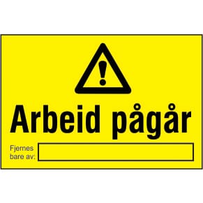 Varselskilt - Arbeid pågår, 30x20 cm. pvc