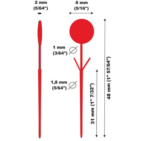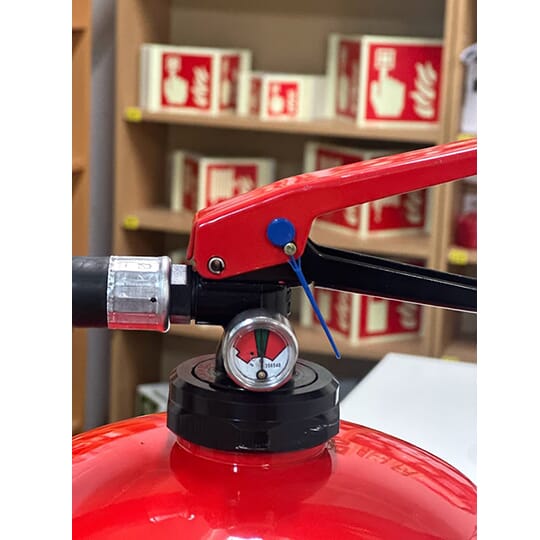 Stikkplombe for brannslukkere med sikringspinner med hull i enden. Kan enkelt fjernes ved å trekke ut sikringspinnen eller dra vekk hodet på plomberingen.